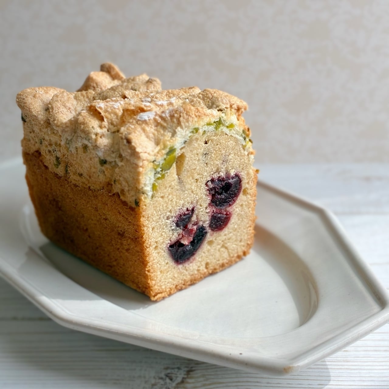 低温でじっくりと火を入れた自家製アメリカンチェリーのコンフィを、香り高いバニラビーンズ入りのケーク生地に散りばめました。